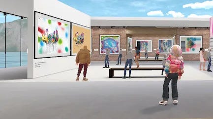 The children turned their weekly spelling words into images using generative tools, then placed them alongside their handwritten originals in a small virtual gallery they could enter using avatars.