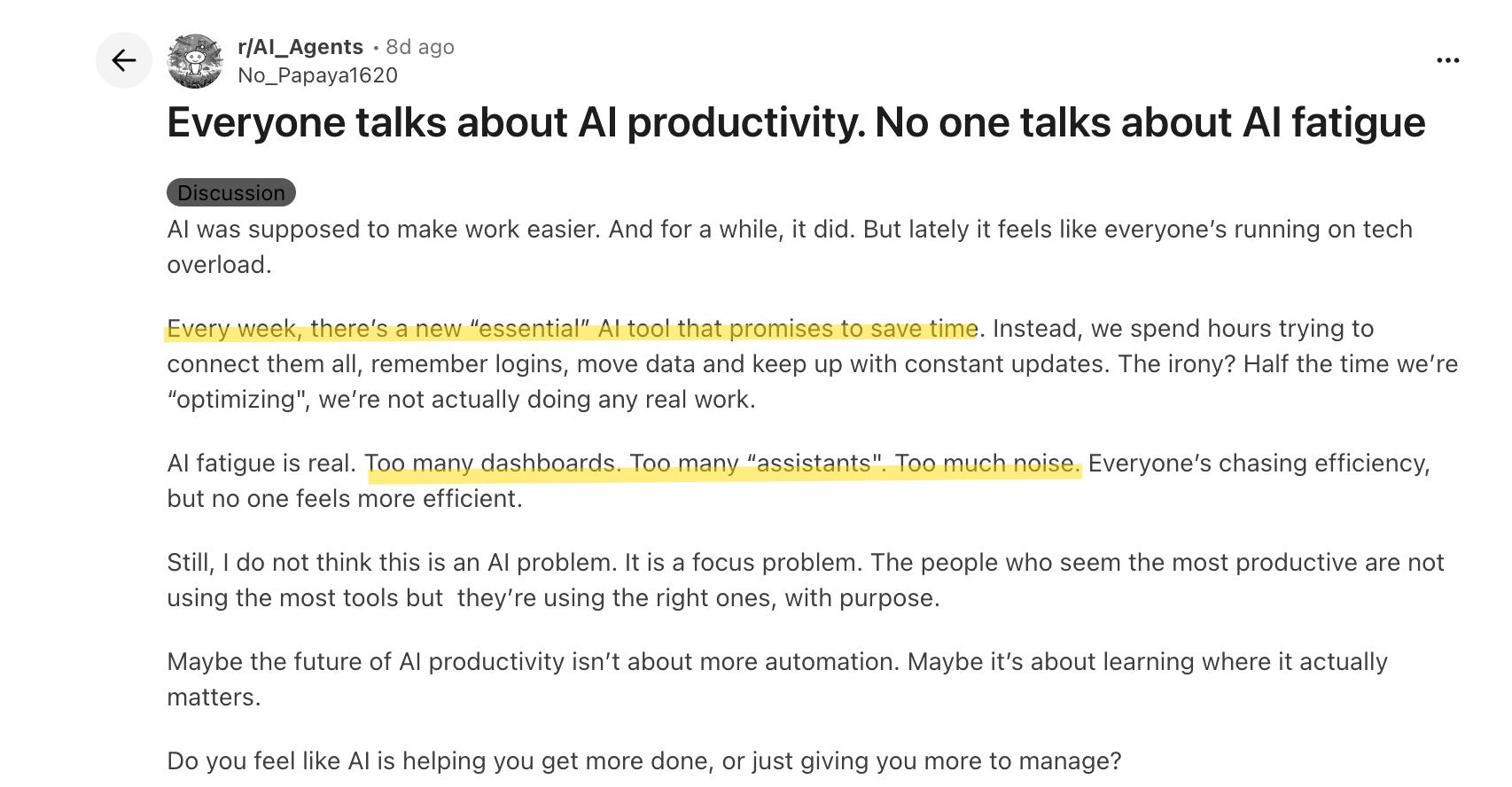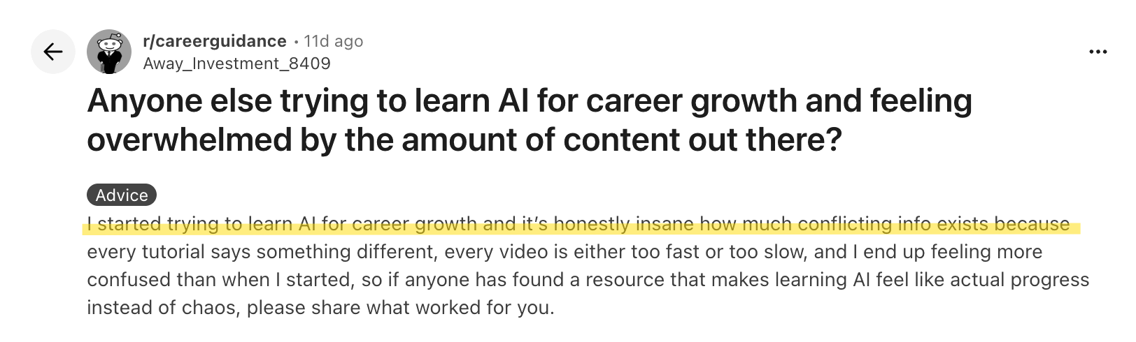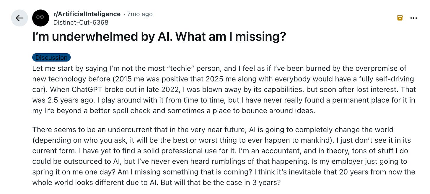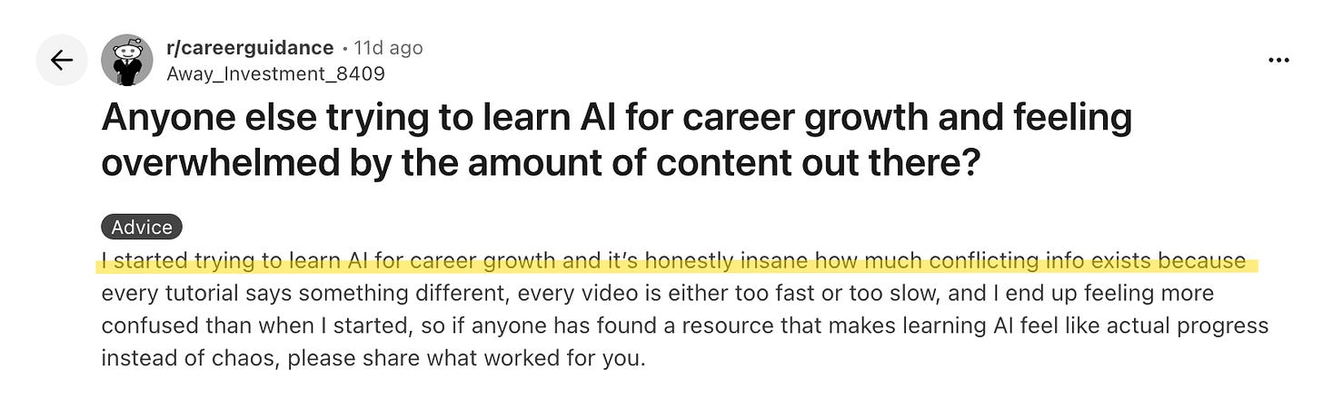 So if we dig another layer deeper, it’s more than just feeling confused about AI, you’re terrified of betting wrong—of committing to a position (or even time and money) and looking like a fool when the consensus shifts again next week.