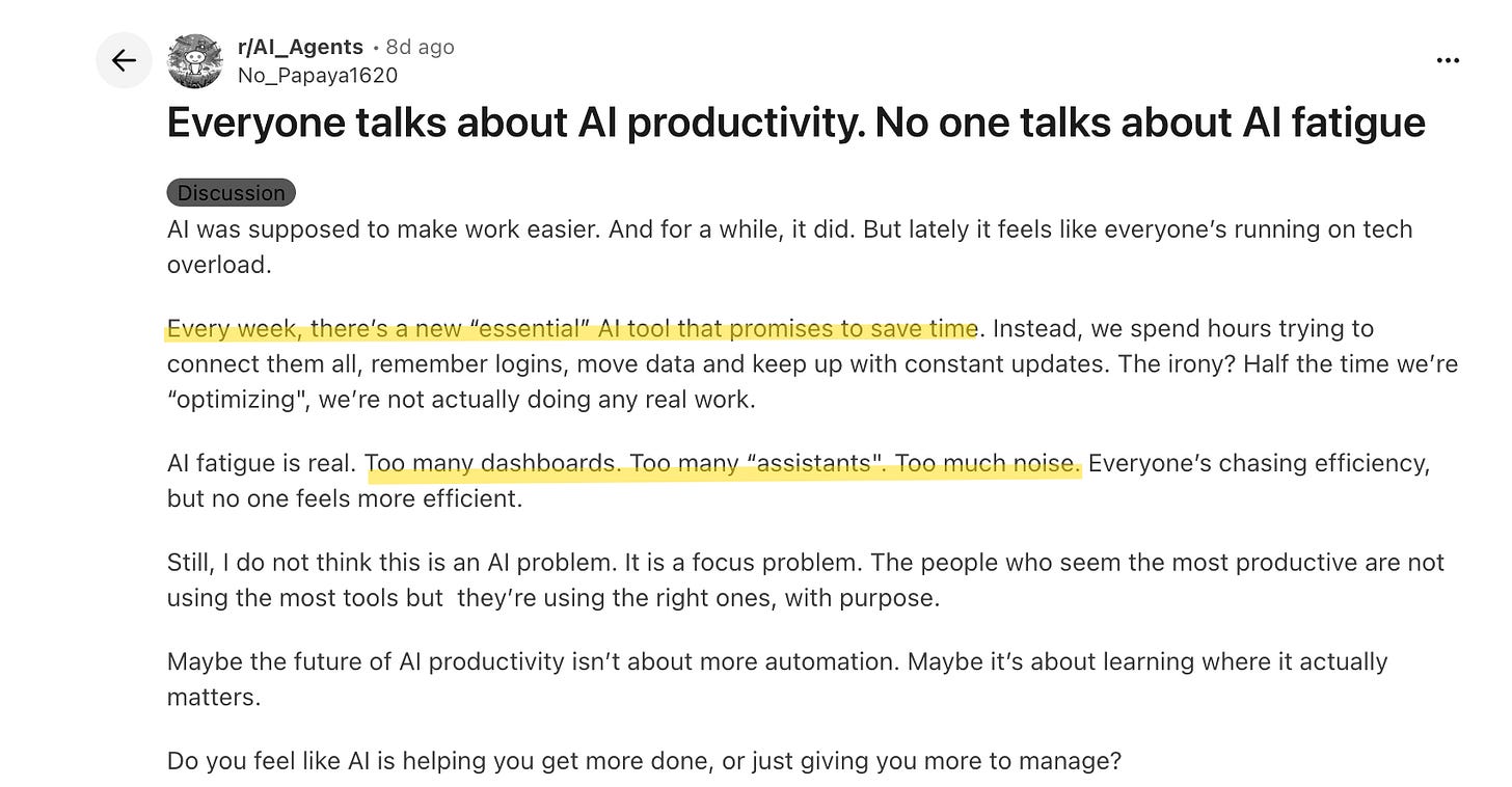 This anxiety shows up in two ways. Some people are frantically adopting every AI tool they can find. Others are exhausted and resentful, wondering if they really have to learn another thing.