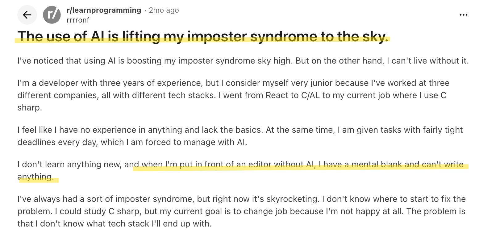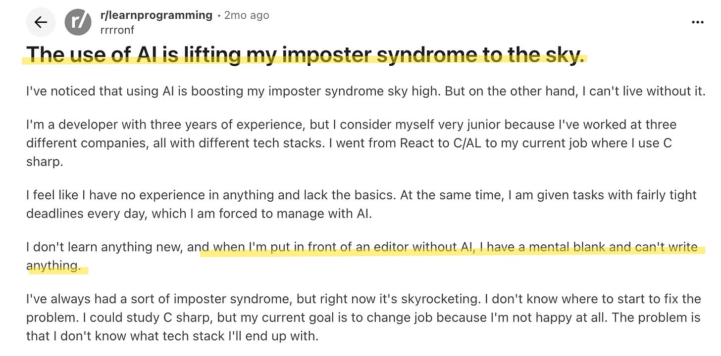 You’ve become dependent on something you don’t fully trust. Your imposter syndrome intensified the moment you started using AI. Yet you can’t imagine working without it.
