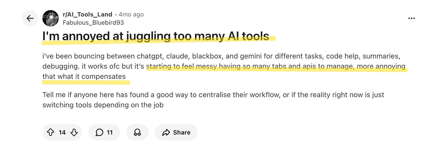 on r/AI_Tools_Land - I'm annoyed at juggling too many AI tools