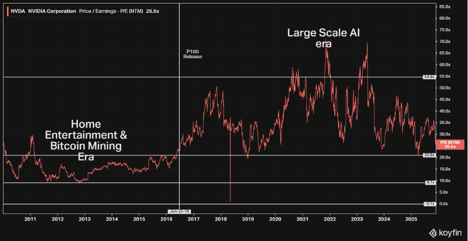Before 2016, Nvidia was a gaming hardware company with a brief detour into bitcoin mining. Investors treated it like one, paying for a stock price that’s between 10x and 20x earnings.